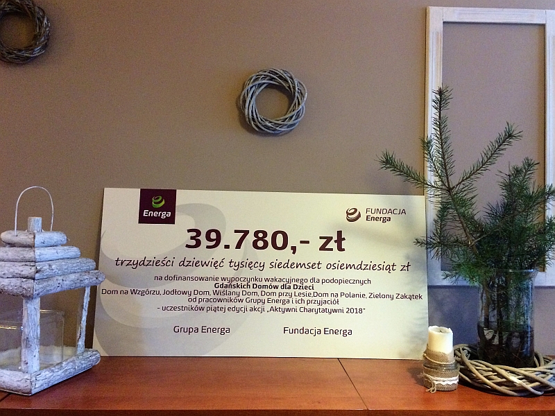 Ogromne podziękowania dla pracowników Grupy Energa i ich przyjaciół – uczestników piątej edycji akcji „Aktywni Charytatywni 2018” za przekazanie podopiecznym Gdańskich Domów dla Dzieci czeku o wartości 39.780 zł. Cała kwota zostanie przeznaczana na organizację wypoczynku zimowego i letniego dla naszych wychowanków. Bardzo dziękujemy za trud i zaangażowanie na rzecz pomocy naszym dzieciom.